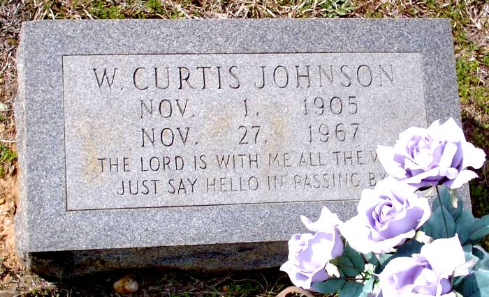 | Johnson, W. Curtis - NEW PHOTO 7-7-2007 | Nov. 1, 1905 | Nov. 27, 1967 | "THE LORD IS WITH ME ALL THE WAY" "JUST SAY HELLO IN PASSING BY" | BB & NJ |