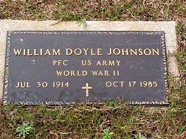 | Johnson, Doyle - NEW PHOTO 6-28-2007 | July 30, 1914 | Oct. 17, 1985 | Double Stone with Myrtis Smith Johnson has their photo "MARRIED JUL. 25, 1936" Back of Stone "JOHNSON" "SON LARRY D." "GRANDCHILDREN MARLON SHAUNNA" Military Stone Cross symbol "WILLIAM DOYLE JOHNSON" "PFC US ARMY" "WORLD WAR II" | BB & NJ |