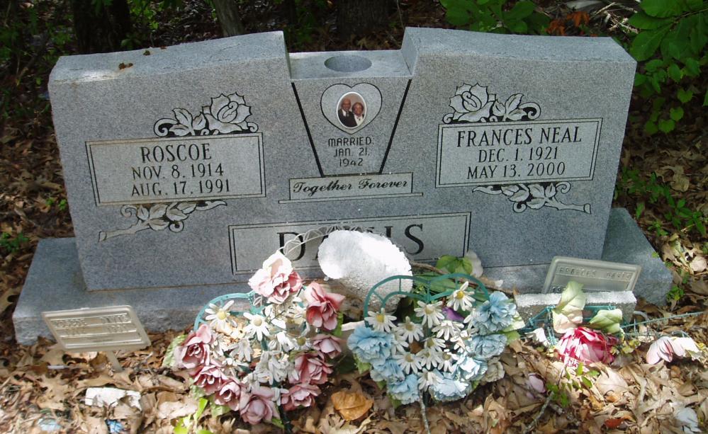 | Davis, Roscoe - NEW PHOTO 3-5-2013 | Nov. 8, 1914 | Aug. 17, 1991 | Double Stone with Frances Neal Davis "MARRIED JAN. 21, 1942" "Together Forever" Real Photo in Heart Emblem [h/o Frances Neal] | JM |