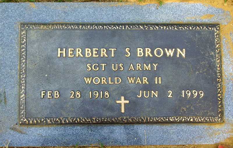 | BROWN, HERBERT S. | FEB 28 1918 | JUN 2 1999 | "SGT US ARMY" "WORLD WAR II" Christian Cross emblem |