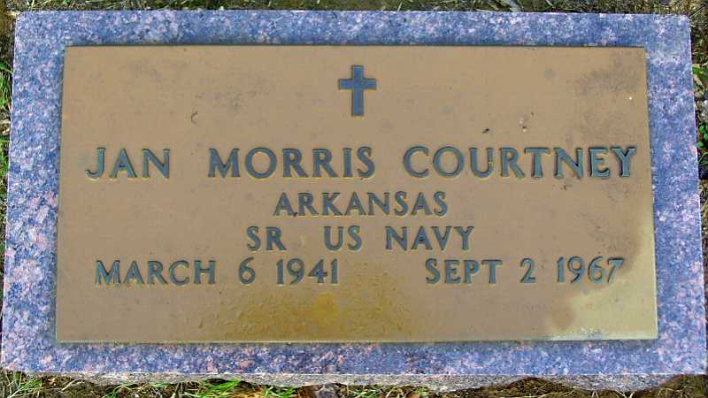 | COURTNEY, JAN MORRIS | MARCH 6 1941 | SEPT 2 1967 | "ARKANSAS" "SR US NAVY" Christian Cross emblem |
