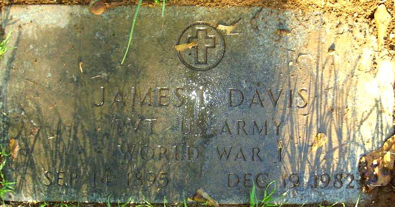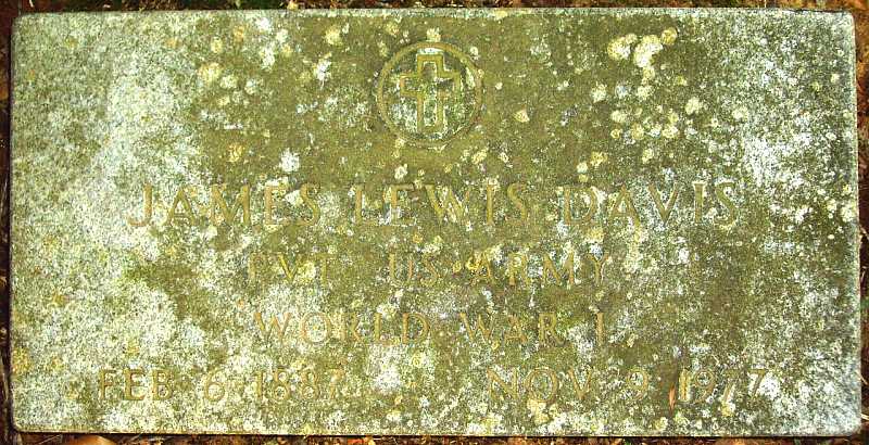 | DAVIS, JAMES LEWIS | FEB 6 1887 | NOV 9 1997 | "PVT US ARMY" "WORLD WAR I" Chrisitian Cross in circle emblem |