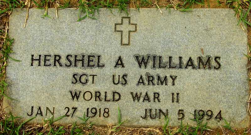 | WILLIAMS, HERSHEL A. | JAN 27 1918 | JUN 5 1994 | "SGT US ARMY" "WORLD WAR II" Christian Cross emblem |