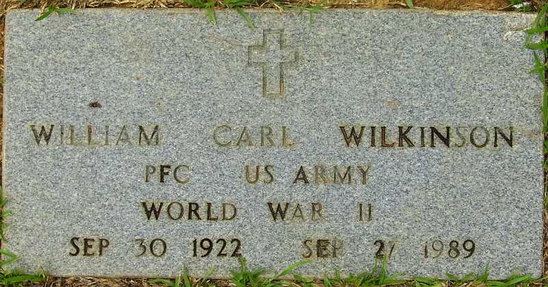 | WILKINSON, WILLIAM CARL | SEP 30 1922 | SEP 27 1989 | "PFC US ARMY" "WORLD WAR II" Christian Cross emblem |