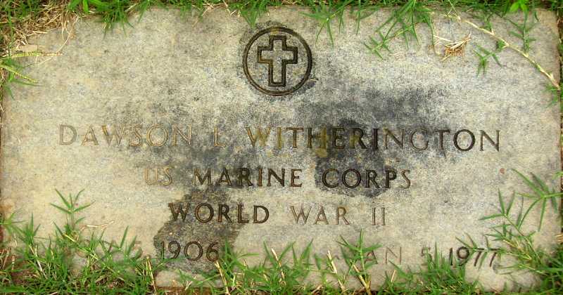 | WITHERINGTON, DAWSON L. | NOV 5 1906 | JAN 5 1977 | "US MARINE CORPS" "WORLD WAR II" Christian Cross in circle emblem |