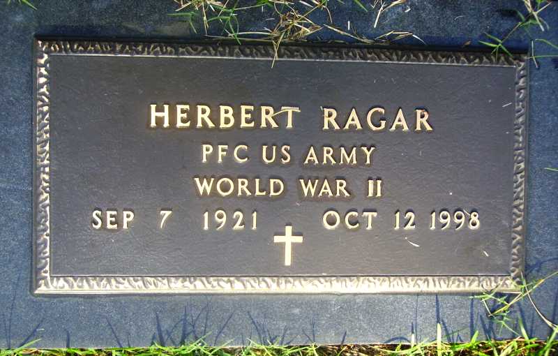 | RAGAR, HERBERT | SEP 7 1921 | OCT 12 1998 | "PFC US ARMY" "WORLD WAR II" Christian Cross emblem |