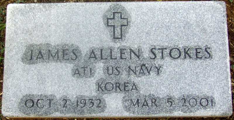 | STOKES, JAMES ALLEN | OCT 2 1932 | MAR 5 2001 | "AT1 US NAVY" "KOREA" Christian Cross emblem |