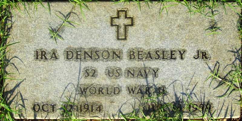 | BEASLEY, IRA DENSON, JR. | OCT 12 1914 | JUN 18 1999 | "S2 US NAVY" "WORLD WAR II" Christian Cross emblem |