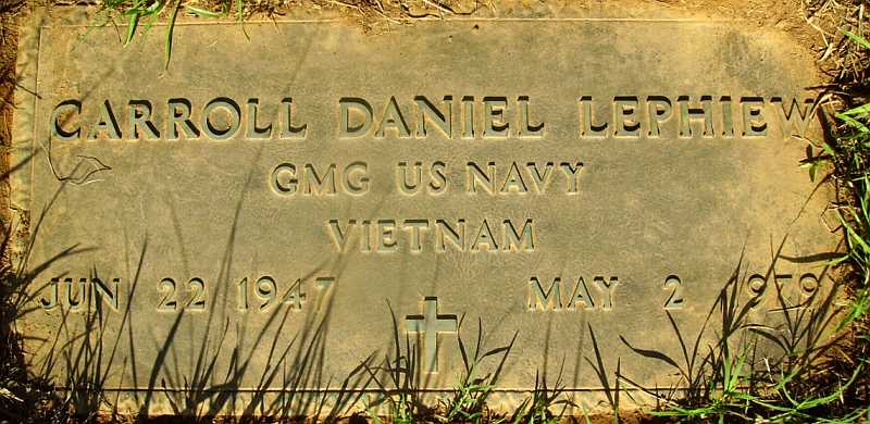 | CARR, BILLY EUGENE SR. | SEP 4 1946 | MAR 24 2002 | "US NAVY" "VIETNAM" Christian Cross emblem |