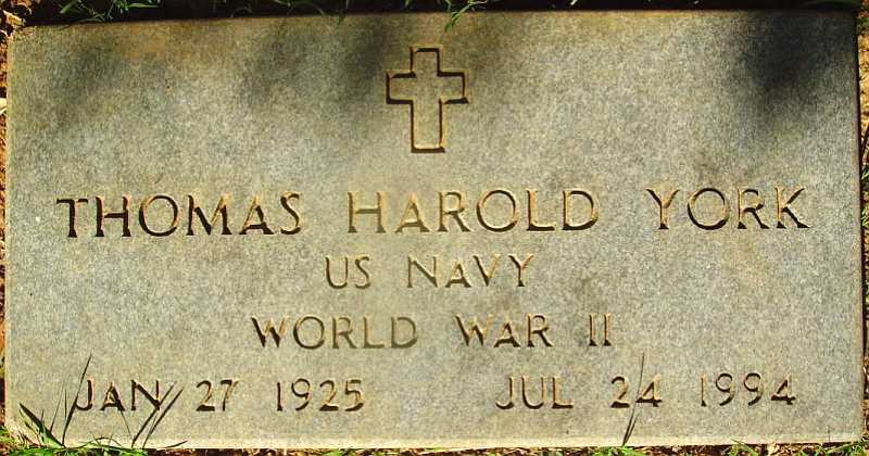 | YORK, THOMAS HAROLD | JAN 27 1925 | JUL 24 1994 | "US NAVY" "WORLD WAR II" Christian Cross emblem |