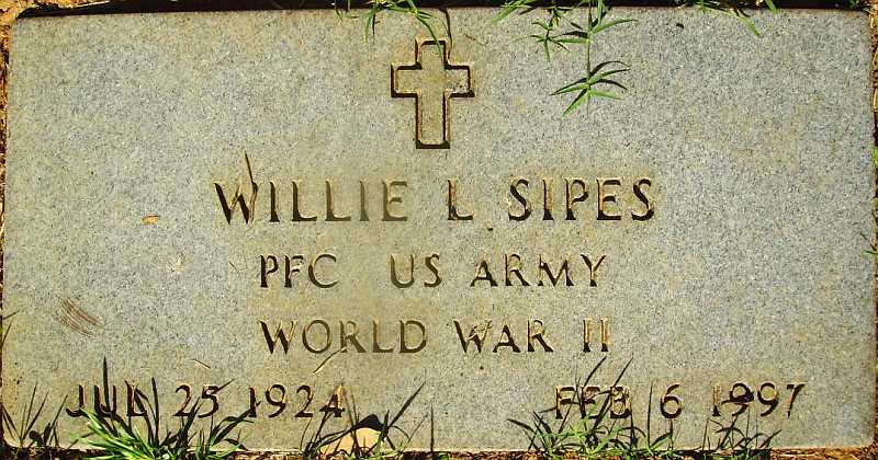| SIPES, WILLIE L. | JUL 25 1924 | FEB 6 1997 | "PFC US ARMY" "WORLD WAR II" Christian Cross emblem |