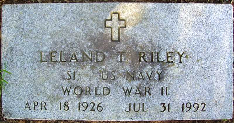 | RILEY, LELAND T. | APR 18 1926 | JUL 31 1992 | "S1 US NAVY" "WORLD WAR II" Christian Cross emblem |