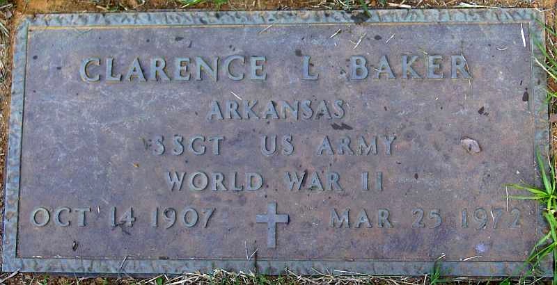 | BAKER, CLARENCE L. | OCT 14 1907 | MAR 25 1972 | "ARKANSAS" "SSGT US ARMY" "WORLD WAR II" Christian Cross emblem |