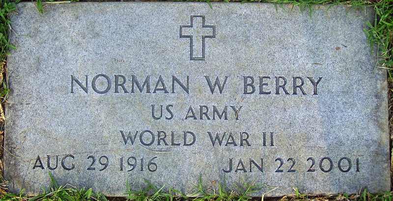 | BERRY, NORMAN W. | AUG 29 1916 | JAN 22 2001 | "US ARMY" "WORLD WAR II" Christian Cross emblem |