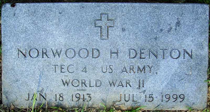 | DENSON, NORWOOD H. | JAN 18 1913 | JUL 15 1999 | "TEC 4 US ARMY" "WORLD WAR II" Christian Cross emblem |