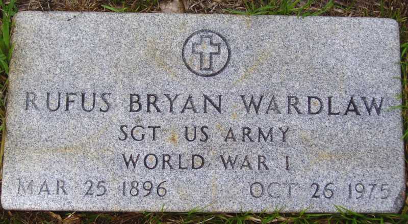 | WARDLAW, RUFUS BRYAN | MAR 25 1896 | OCT 26 1975 | "SGT US ARMY" "WORLD WAR I" Christian Cross in circle emblem |