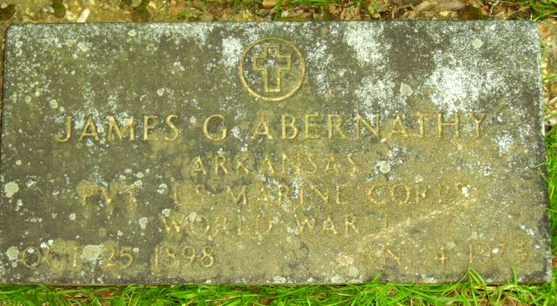 | ABERNATHY, JAMES G. | OCT 25 1898 | JAN 4 1973 | "ARKANSAS" "PVT US MARINE CORPS" "WORLD WAR I" Christian Cross in circle emblem |