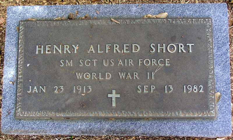 | SHORT, HENRY ALFRED | JAN 23 1913 | SEP 13 1982 | "SM SGT US AIR FORCE" "WORLD WAR II" Christian Cross emblem |