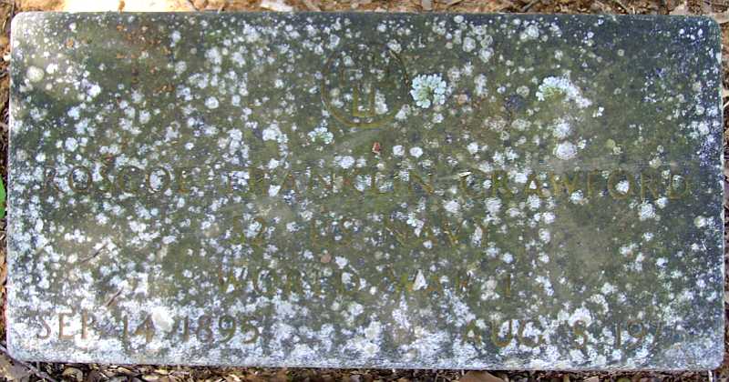 | CRAWFORD, ROSCOE FRANKLIN | SEP 14 1895 | AUG 8 1975 | "S2 US NAVY" "WORLD WAR I" |