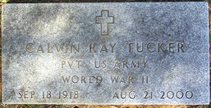 | TUCKER, CALVIN RAY | SEP 18 1918 | AUG 21 2000 | "PVT US ARMY" "WORLD WAR II" Christian Cross emblem |