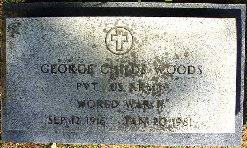 | WOODS, GEORGE CHILDS | SEP 12 1916 | JAN 20 1981 | "PVT US ARMY" "WORLD WAR II" Christian Cross in circle emblem |
