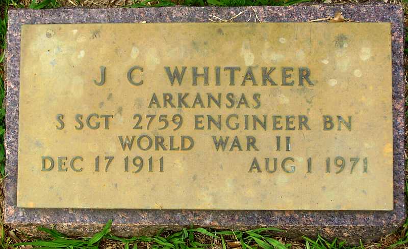 | WHITAKER, J. C. | DEC 17 1911 | AUG 1 1971 | "ARKANSAS" "S SGT 2759 ENGINEER BN" "WORLD WAR II" |