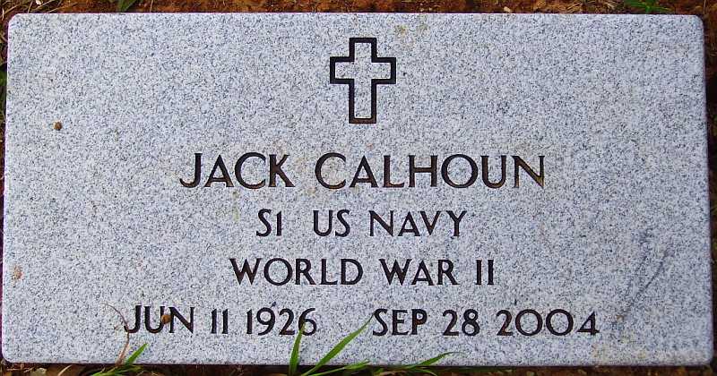 | CALHOUN, JACK | JUN 11 1926 | SEP 28 2004 | "S1 US NAVY" "WORLD WAR II" Christian Cross emblem |