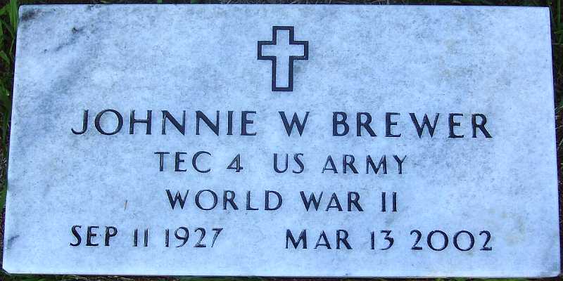| BREWER, JOHNNIE W. | SEP 11 1927 | MAR 13 2002 | "TEC 4 US ARMY" "WORLD WAR II" Christian Cross emblem |