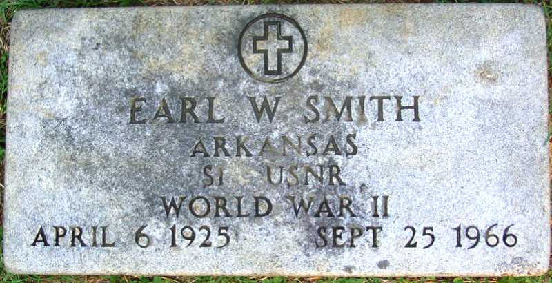| SMITH, EARL W. | APRIL 6 1925 | SEPT 25 1966 | "ARKANSAS" "S1 USNR" "WORLD WAR II" Christian Cross in circle emblem |