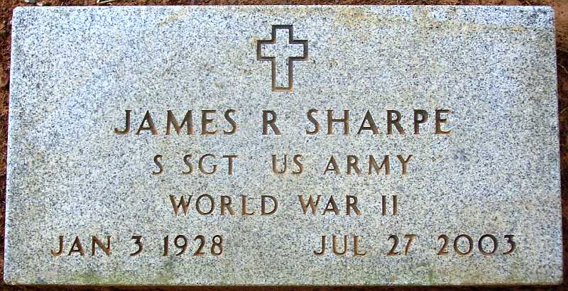 | SHARPE, JAMES R. | JAN 3 1928 | JUL 27 2003 | "S SGT US ARMY" "WORLD WAR II" Christian Cross emblem |