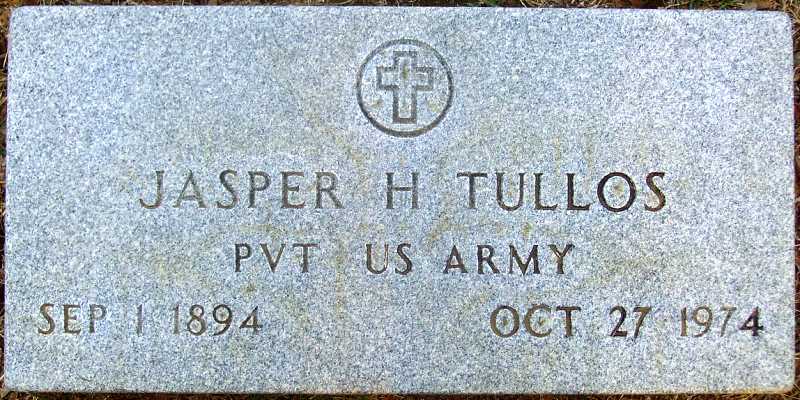 | TULLOS, JASPER H. | SEP 1 1894 | OCT 27 1974 | "PVT US ARMY" Christian Cross in circle emblem |