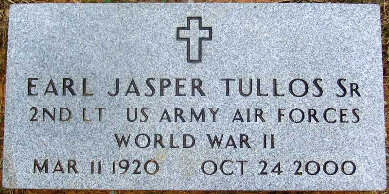 | TULLOS, EARL JASPER, SR. | MAR 11 1920 | OCT 24 2000 | "2ND LT US ARMY AIR FORCES" "WORLD WAR II" Christian Cross emblem |