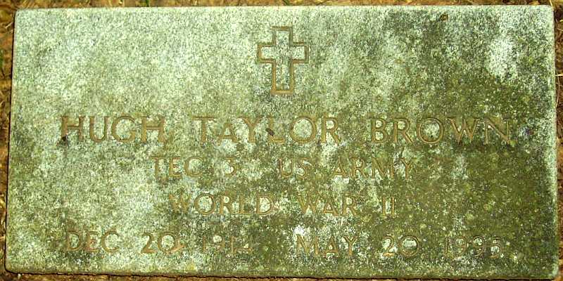| BROWN, HUGH TAYLOR | DEC 20 1914 | MAY 20 1995 | "TEC 3 US ARMY" "WORLD WAR II" Christian Cross emblem |