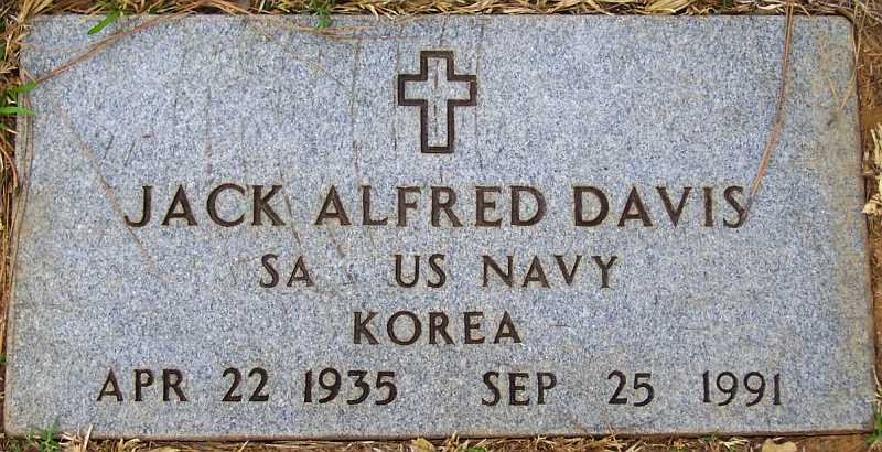 | DAVIS, JACK ALFRED | APR 22 1935 | SEP 25 1991 | "SA US NAVY" "KOREA" Christian Cross emblem |