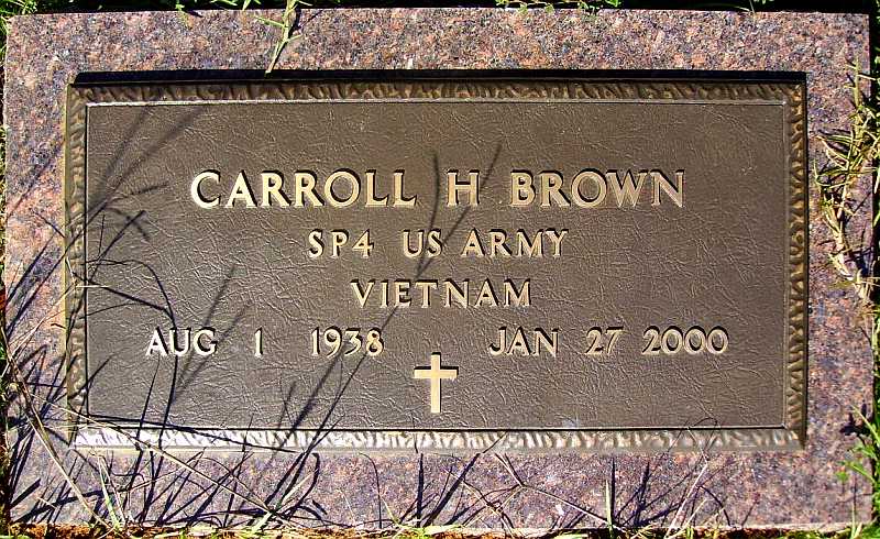 | BROWN, CARROLL H. | AUG 1 1938 | JAN 27 2000 | "SP4 US ARMY" "VIETNAM" Christian Cross emblem |