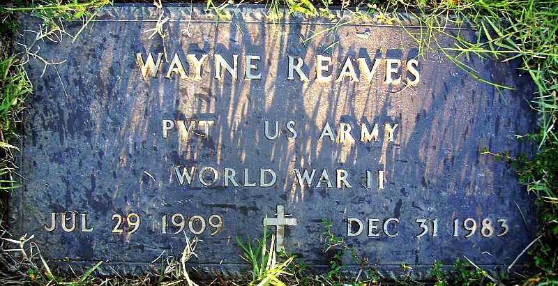 | REAVES, WAYNE | JUL 29 1909 | DEC 31 1983 | "PVT US ARMY" "WORLD WAR II" Christian Cross emblem |