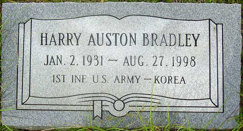 | BRADLEY, HARRY AUSTON | JAN. 2, 1931 | AUG. 27, 1998 | "1ST INF U.S. ARMY ~ KOREA" in Bible or Book emblem |