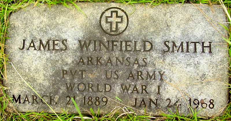 | SMITH, JAMES WINFIELD | MARCH 21 1889 | JAN 24 1968 | "ARKANSAS" "PVT US ARMY" "WORLD WAR I" Christian Cross in circle em,blem |