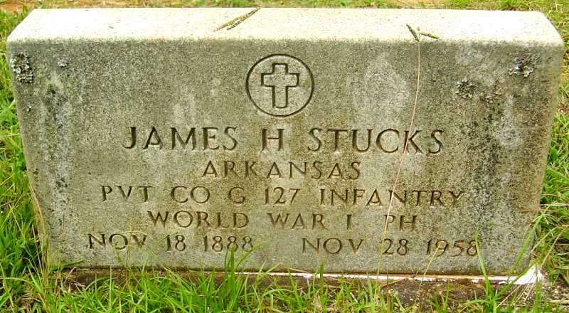 | STUCKS, JAMES H. | NOV 18 1888 | NOV 28 1958 | "ARKANSAS" "PVT CO G 127 INFANTRY" "WORLD WAR I PH" Christian Cross in circle emblem |