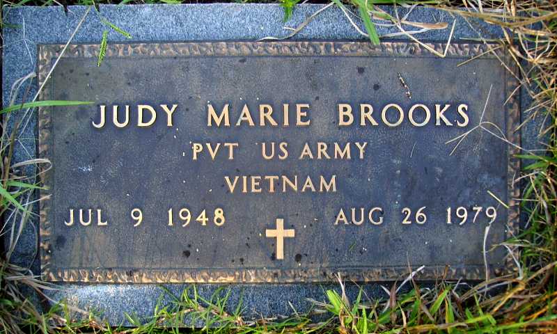 | BROOKS, JUDY MARIE | JUL 9 1948 | AUG 26 1979 | "PVT US ARMY" "VIETNAM" Christian Cross |