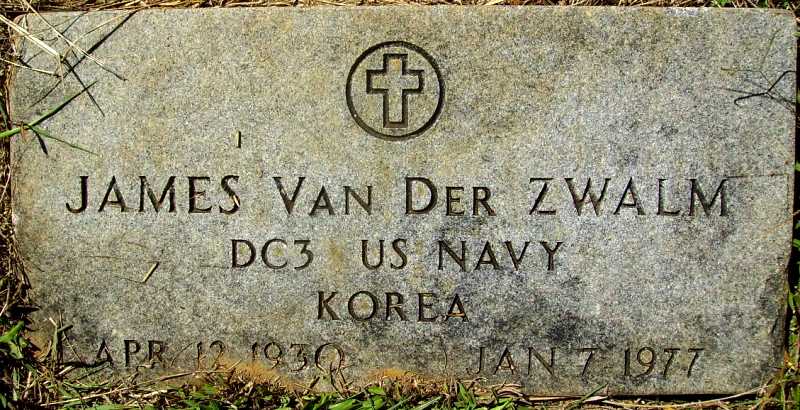 | VAN DER ZWALM, JAMES | APR 12 1930 | JAN 7 1977 | "DC3 US NAVY" "KOREA" Christian Cross in circle emblem |