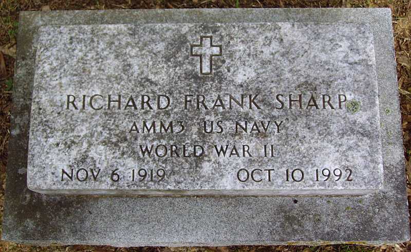 | SHARP, RICHARD FRANK | NOV 6 1919 | OCT 10 1992 | "AMM3 US NAVY" "WORLD WAR II" Christian Cross emblem |