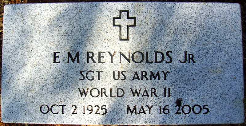 | REYNOLDS, E. M., JR. | OCT 2 1925 | MAY 16 2005 | "SGT US ARMY" "WORLD WAR II" Christian Cross emblem |