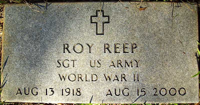 | REEP, ROY | AUG 13 1918 | AUG 15 2000 | "SGT US ARMY" "WORLD WAR II" Christian Cross emblem |