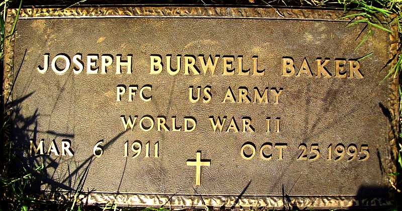 | BAKER, JOSEPH BURWELL | MAR 6 1911 | OCT 25 1995 | "PFC US ARMY" "WORLD WAR II" Christian Cross emblem |