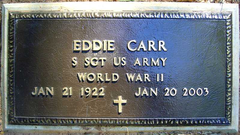 | CARR, EDDIE | JAN 21 1922 | JAN 20 2003 | "S SGT US ARMY" "WORLD WAR II" Christian Cross emblem |