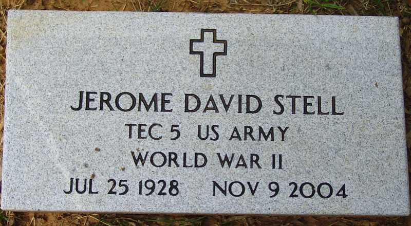 | STELL, JEROME DAVID | JUL 25 1928 | NOV 9 2004 | "TEC 5 US ARMY" "WORLD WAR II" Christian Cross emblem |