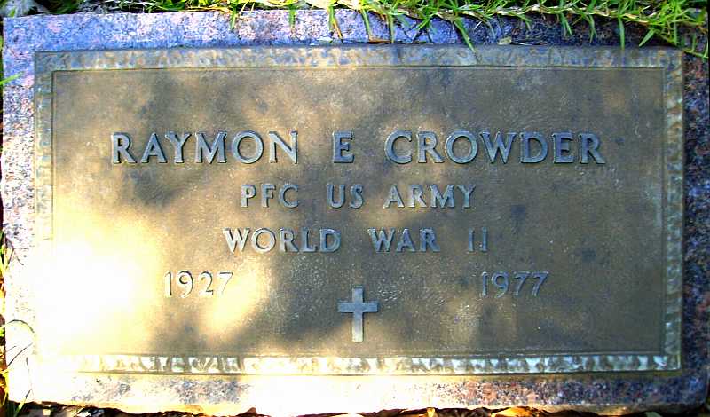 | CROWDER, RAYMON E. | 1927 | 1977 | "PFC US ARMY" "WORLD WAR II" Christian Cross emblem |