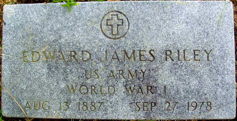| RILEY, EDWARD JAMES | AUG 13 1887 | SEP 27 1978 | "US ARMY" "WORLD WAR I" Christian Cross in circle emblem |