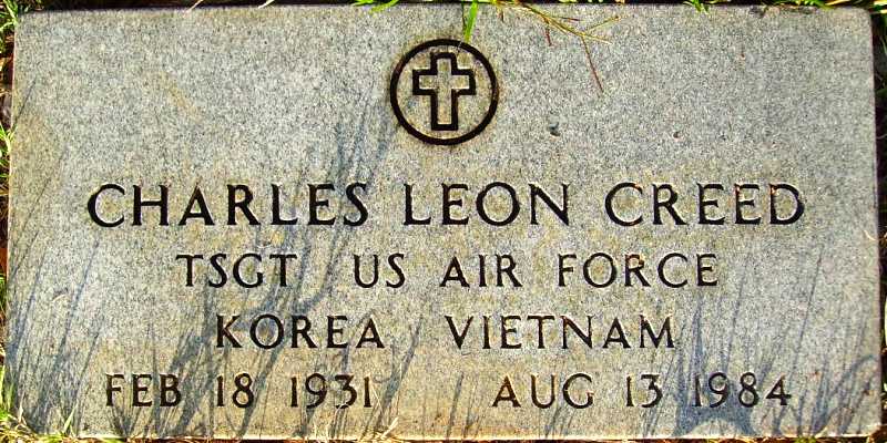 | CREED, CHARLES LEON | FEB 18 1931 | AUG 13 1984 | "TSGT US AIR FORCE" "KOREA VIETNAM" Christian Cross in circle emblem |